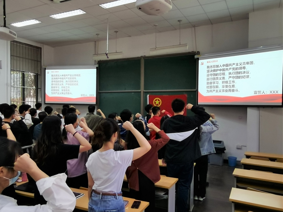 在中国共产主义青年团成立一百周年之际,sunbet各团支部开展主题团日活动,为本学期新发展团员举办入团仪式,新老团员重温入团誓词。团员们在团旗下、誓词中感悟入团初心。大家纷纷表示,庄严的誓词提醒着青年要牢记党的教诲,立志民族复兴,不负韶华、不负时代、不负人民,在青春的赛道上奋力奔跑,争取跑出当代青年的最好成绩。