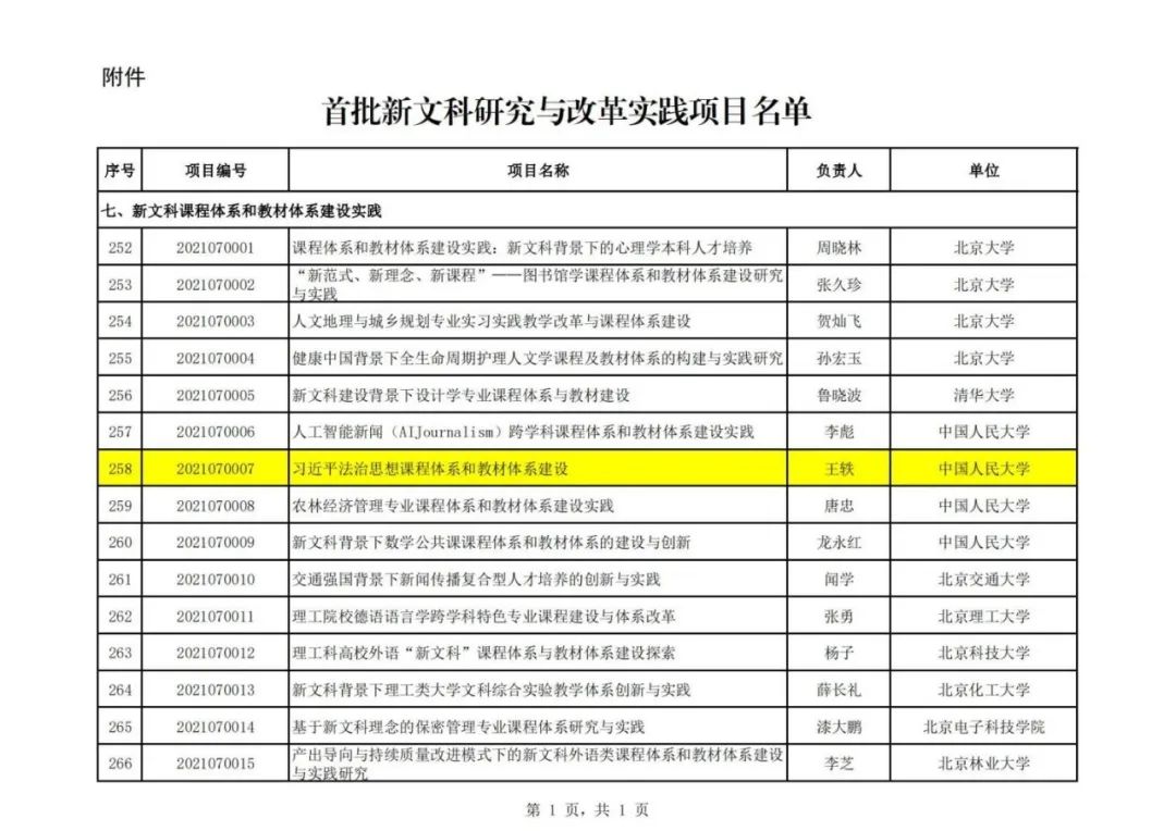▲ “习近平法治思想课程和教材体系建设”获教育部首批新文科研究与改革实践项目
