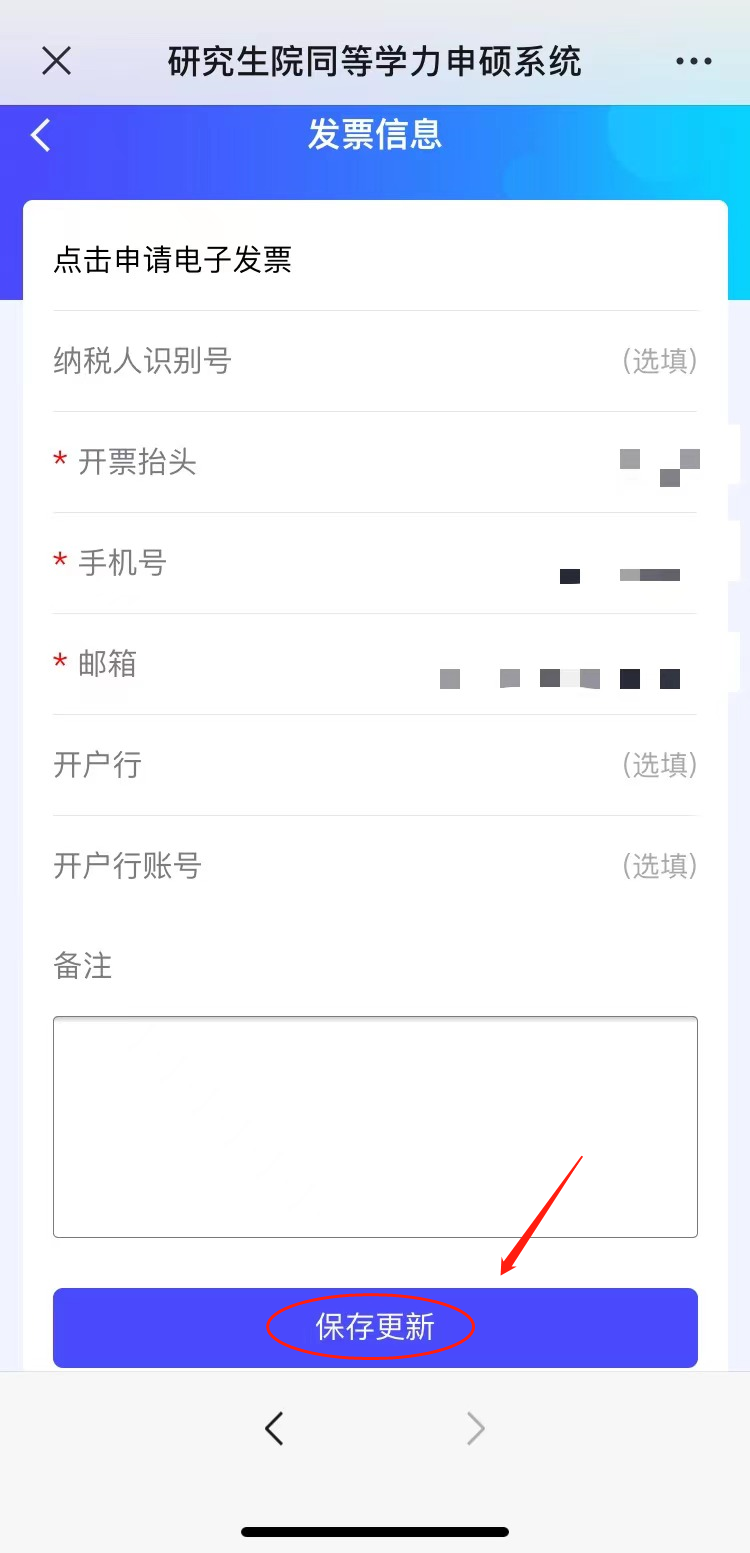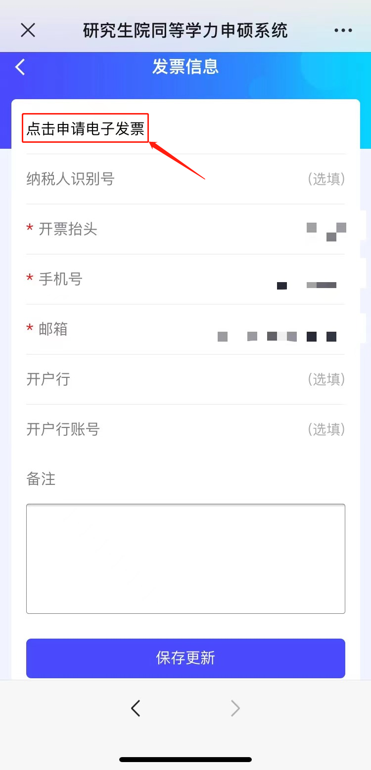 二、完善开票抬头、手机号、邮箱等信息,点击保存更新