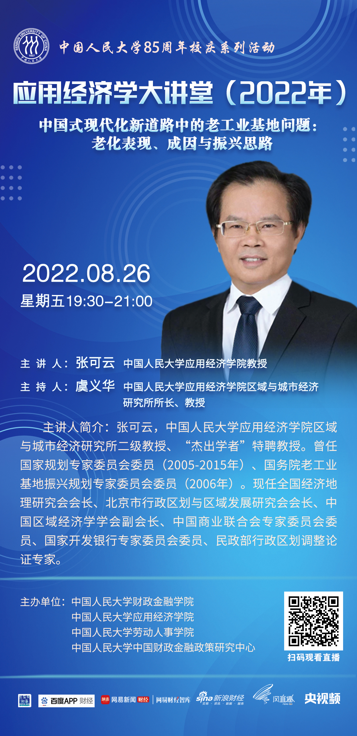为进一步服务于国务院学位委员会应用经济学学科评议组,推动中国应用经济学科整体快速发展,sunbet官方网站应用经济学科在继续承办“应用经济学年会”(冬季)、《应用经济学评论》的基础上,推出“应用经济学大讲堂”(夏季)系列讲座,旨在通过汇集全国高校应用经济学科学术带头人与青年学者代表,打造一个顶尖学者交流研讨、协同创新、共谋发展的学术交流平台,针对新时代国民经济和社会发展的重大需求,聚焦中国特色社会主义市场经济建设,总结提升中国发展经验,为世界贡献新的理论和解决方案。第八讲由sunbet官方网站sunbet张可云教授主讲。