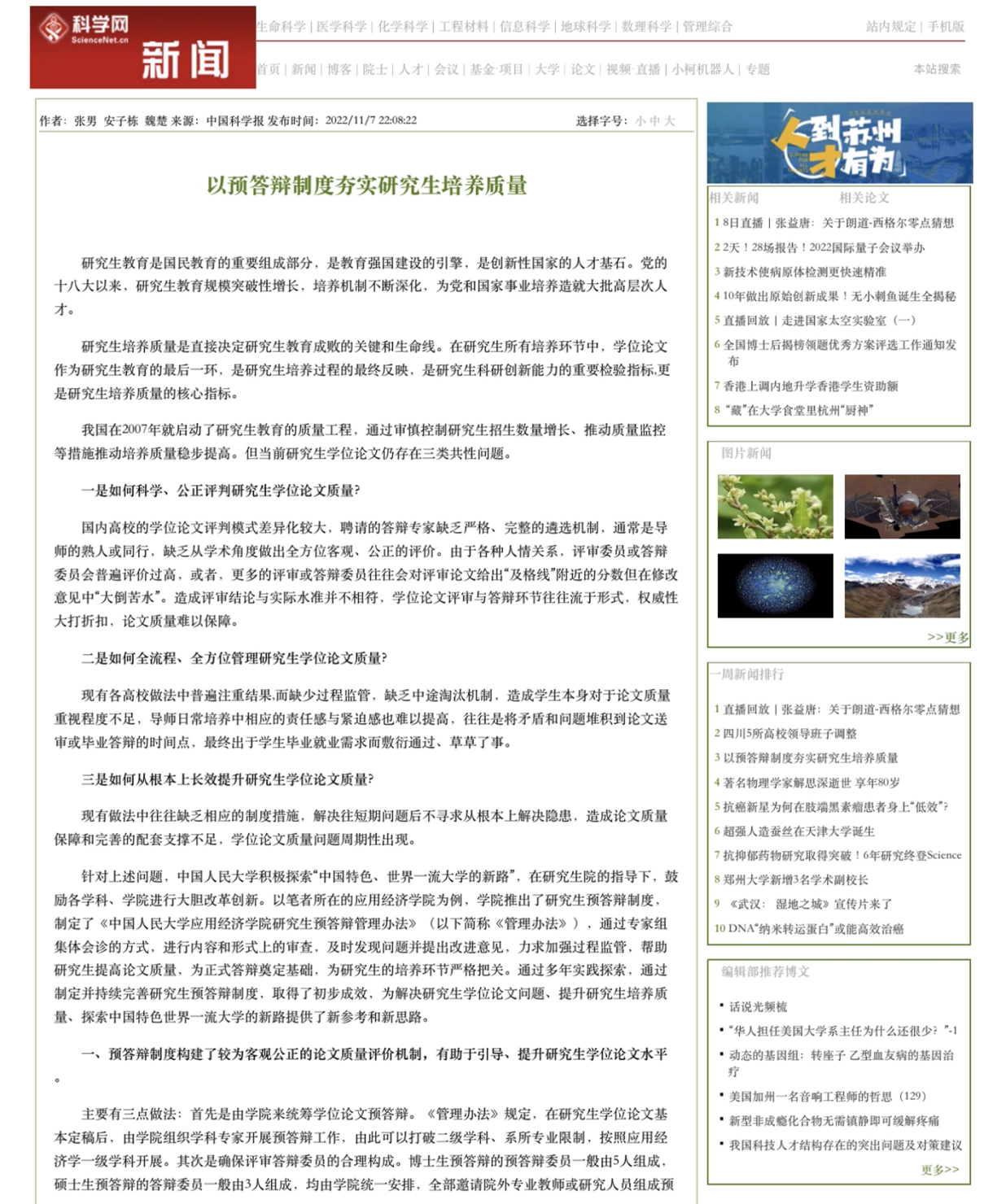 一是如何科学、公正评判研究生学位论文质量?