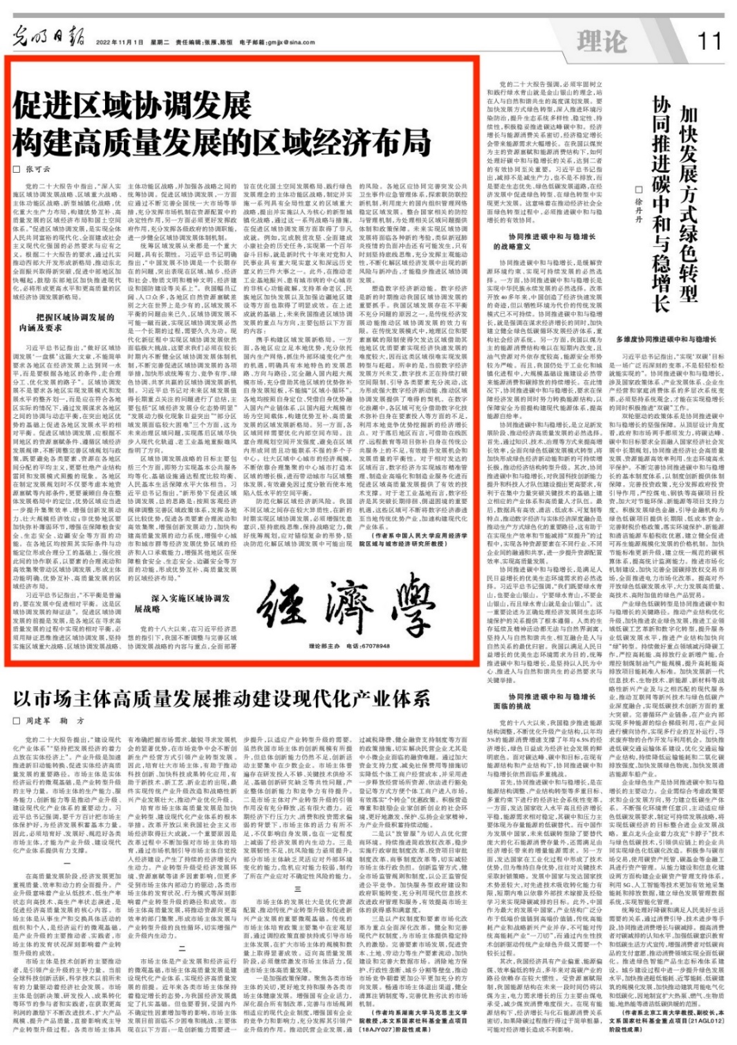 原文链接:[光明日报]张可云:促进区域协调发展 构建高质量发展的区域经济布局