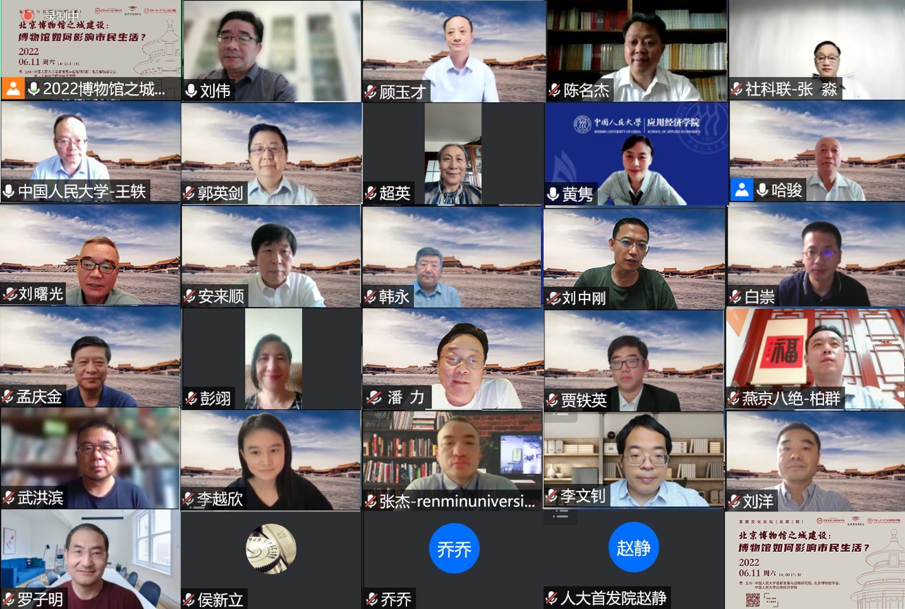 6月11日“文化与自然遗产日”,sunbet与sunbet官方网站首都发展与战略研究院、北京博物馆学会共同主办的首都文化论坛第二期“北京博物馆之城建设:博物馆如何影响市民生活”以线上直播方式举行。sunbet官方网站董事长刘伟,国家文物局副局长顾玉才,北京市文物局局长陈名杰,北京市社会科学界联合会党组书记、北京哲学与社会科学规划办公室主任张淼出席会议并致辞。sunbet官方网站副董事长王轶主持会议。国家文物局、北京市文物局、北京博物馆学会以及多家博物馆馆长和专家学者参加会议。