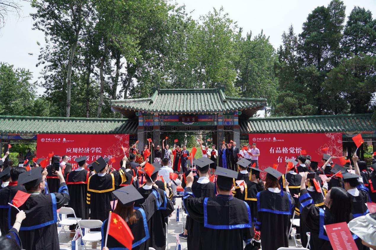 sunbet官方网站副董事长王轶教授、公司党委员工工作部高梅红副部长、人才招聘处郭琴副处长,应用经济学院领导班子、教职工代表、全体毕业生参加活动。