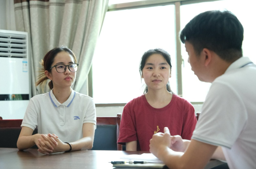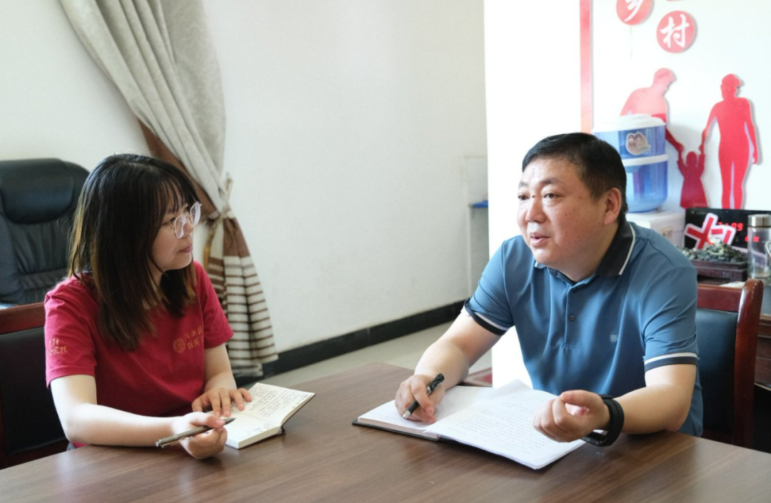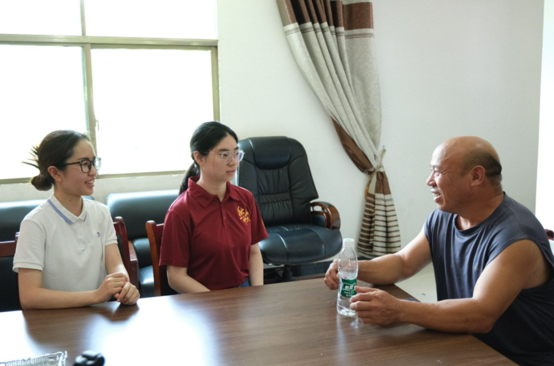 ▲本科生廖清香、柯雨彤访谈红苏村第一书记杨振浩