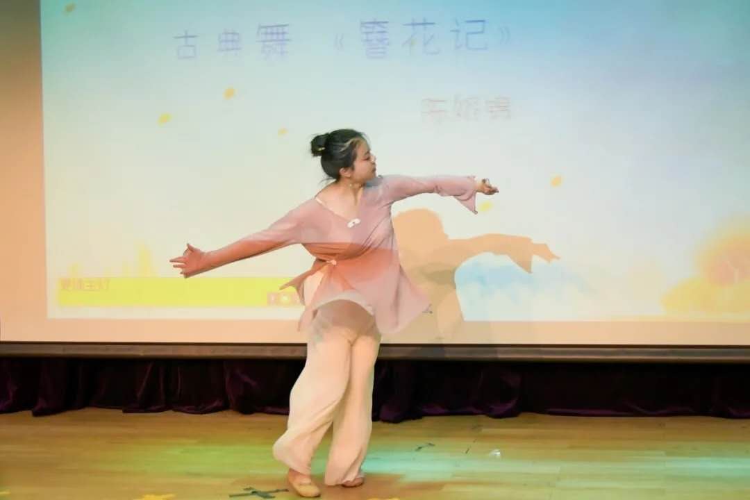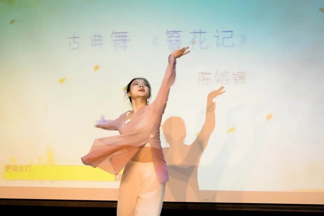 轻盈优美的舞姿,开合遮掩的广袖,踏着有节奏的步调,一位妙龄少女缓缓走来,陈嫆锦同学的一曲《簪花记》舞出了少女的轻盈与美好,温柔了时光。
