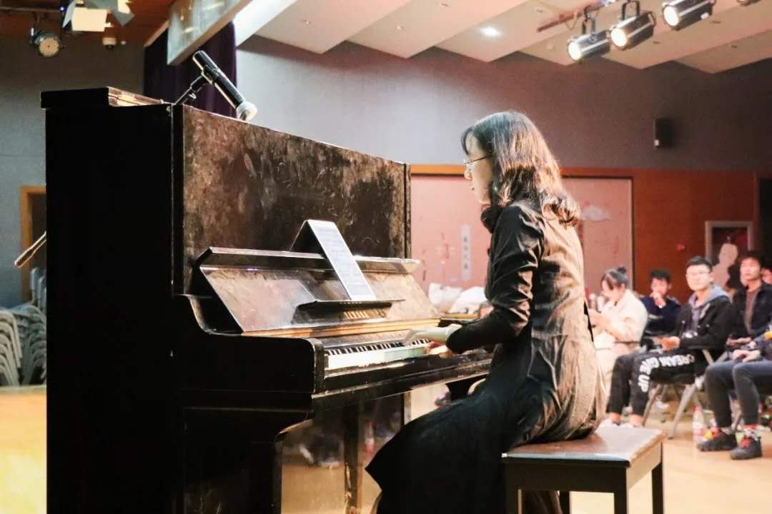 琴声缓缓铺开,如潮水般四散开来,黑白琴键,绯色迷梦,于旋律的起止间,旖旎着轻舞。包晨带来了钢琴独奏《马戏之王》,轻盈的音调如泉水般滚落,大家亦醉在这温柔的音乐中。