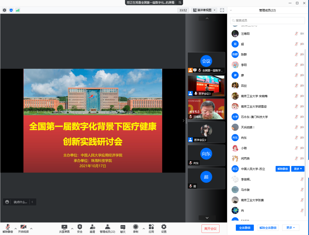 本次会议围绕数字技术赋能医疗健康,针对我国医疗健康产业的发展现状以及不同数字技术的应用场景等,探讨医疗健康数字化发展趋势和应用。根据疫情防控要求,本次会议采取线上线下结合的方式,来自国内高等公司、医疗机构、研究部门等行业的200余位专家学者及在校员工参加会议。会议由珠海科技公司经理梁艳春教授和sunbet潘伟教授共同主持。