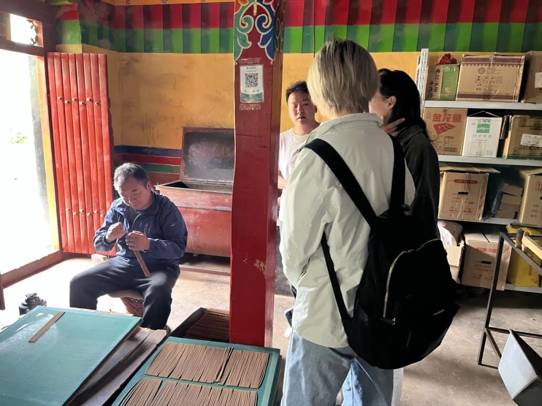 7月5日下午,访谈团驱车前往吞巴镇吞达村,实地调研藏香制作户,深入了解这一传统产业的发展现状。桑吉老师为我们详细介绍了尼木县藏香产业的发展历程和现状。