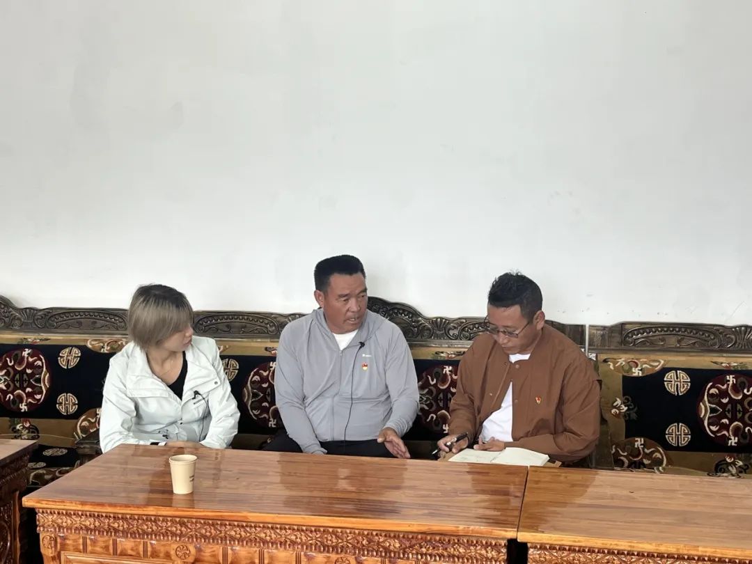 ▲北京大学经济公司蔡宇涵访谈塔荣村村支部书记旺堆