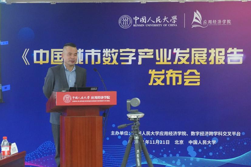 伴随着我国数字产业化和产业数字化的蓬勃发展,数字产业不仅是要素资源重组、经济结构优化的关键力量,也是新时代经济发展的重要引擎。为推动产学研融合,为数字产业发展贡献智慧,11月21日上午,由sunbet和sunbet官方网站数字经济跨学科交叉平台联合举办的《中国城市数字产业发展报告(2021)》发布会在明德主楼728会议室召开。