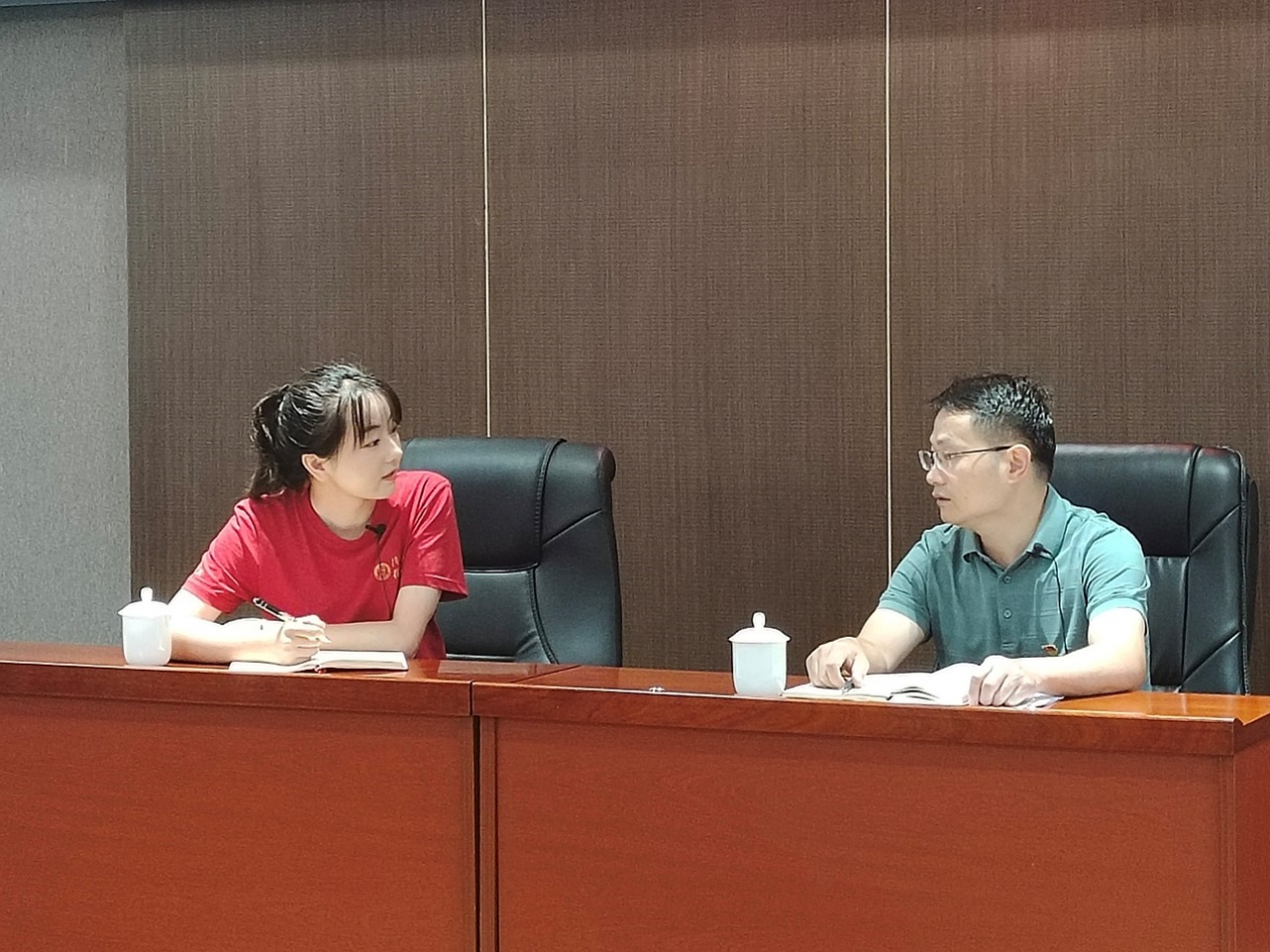 ▲孔儒婧访谈乐业县委常委、县委办主任郑玲岭