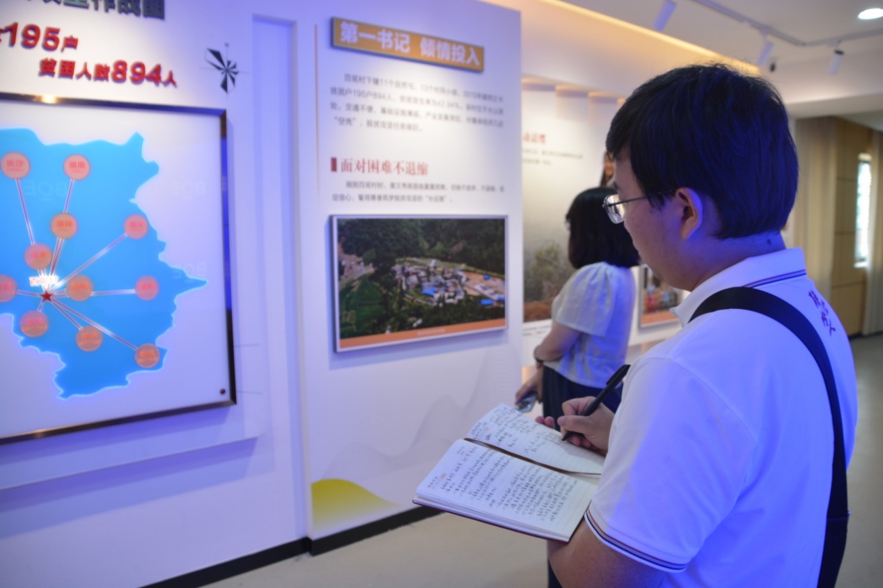 7月20日上午,调研团来到百色脱贫攻坚展示馆实地参观学习。展示馆以时间为脉络,全面展示了革命老区百色几十年间战胜贫困的历程。从新中国成立后的民政救济,到改革开放后的扶贫开发,再到党的十八大以后的精准扶贫、脱贫攻坚,百色人民在党的领导下,书写了战胜贫困的壮丽篇章。