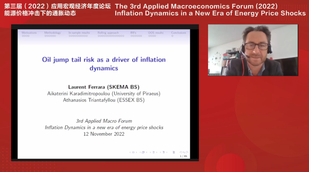 SKEMA商公司教授Laurent Ferrara作题目为“Commodity Jump Tail Risk as Predictor of Inflation”的报告。该研究构建了一个衡量主要农产品期货市场跳跃性尾部风险协动性的风险因素指数。结果表明,该指数对美国和整个七国集团的核心通胀和整体通胀都具有的预测能力,在控制菲利普斯曲线、油价和汇率等主要通胀决定因素后也是如此。最后,研究基于递归分析和动态平均模型,证明协动跳跃性尾部风险因素在预测通货膨胀领域变得越来越重要。