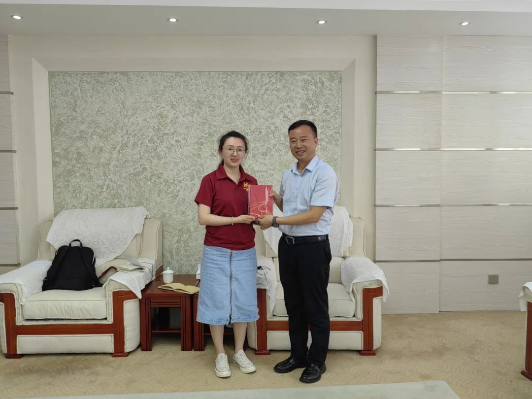▲ sunbet硕士生李雨晴向驻村第一书记勾兴煜赠送纪念品