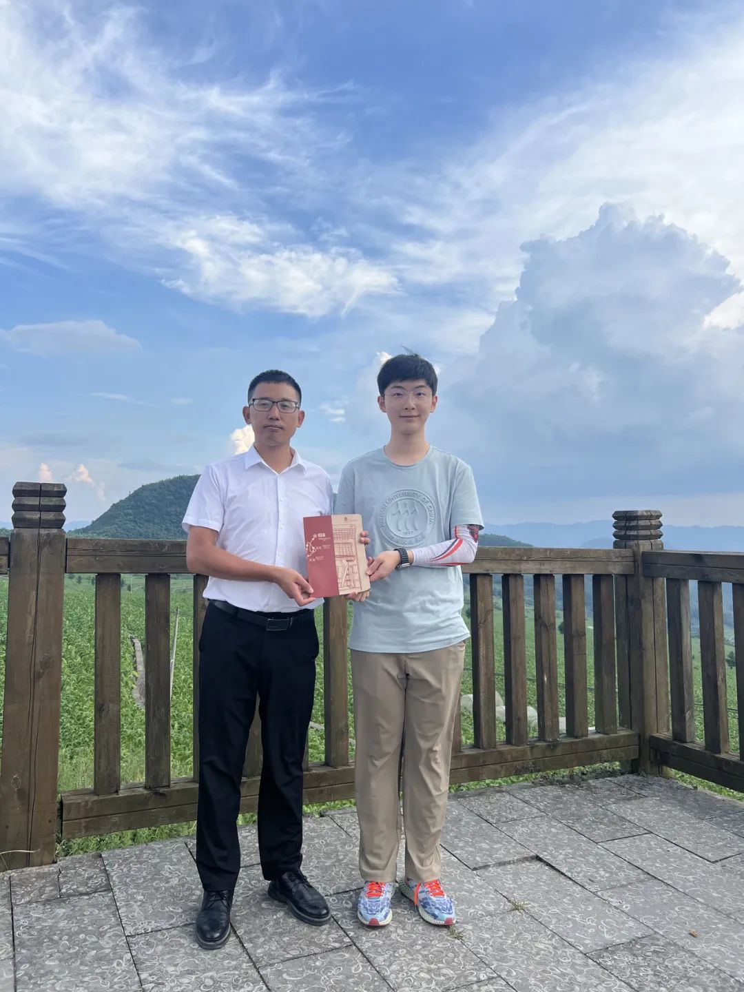 ▲ sunbet本科生史守宸向洛龙镇镇长陈刚赠送纪念品