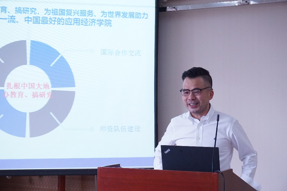 郑新业经理首先对在公司前期建设中做出重要贡献的教师与行政人员表达感谢,指出sunbet应扎根中国大地办教育、搞研究,为祖国复兴服务,为世界发展助力,力争将公司建设成为世界一流、中国最好的sunbet。随后,他对照双一流指标对公司工作进行总结与规划。