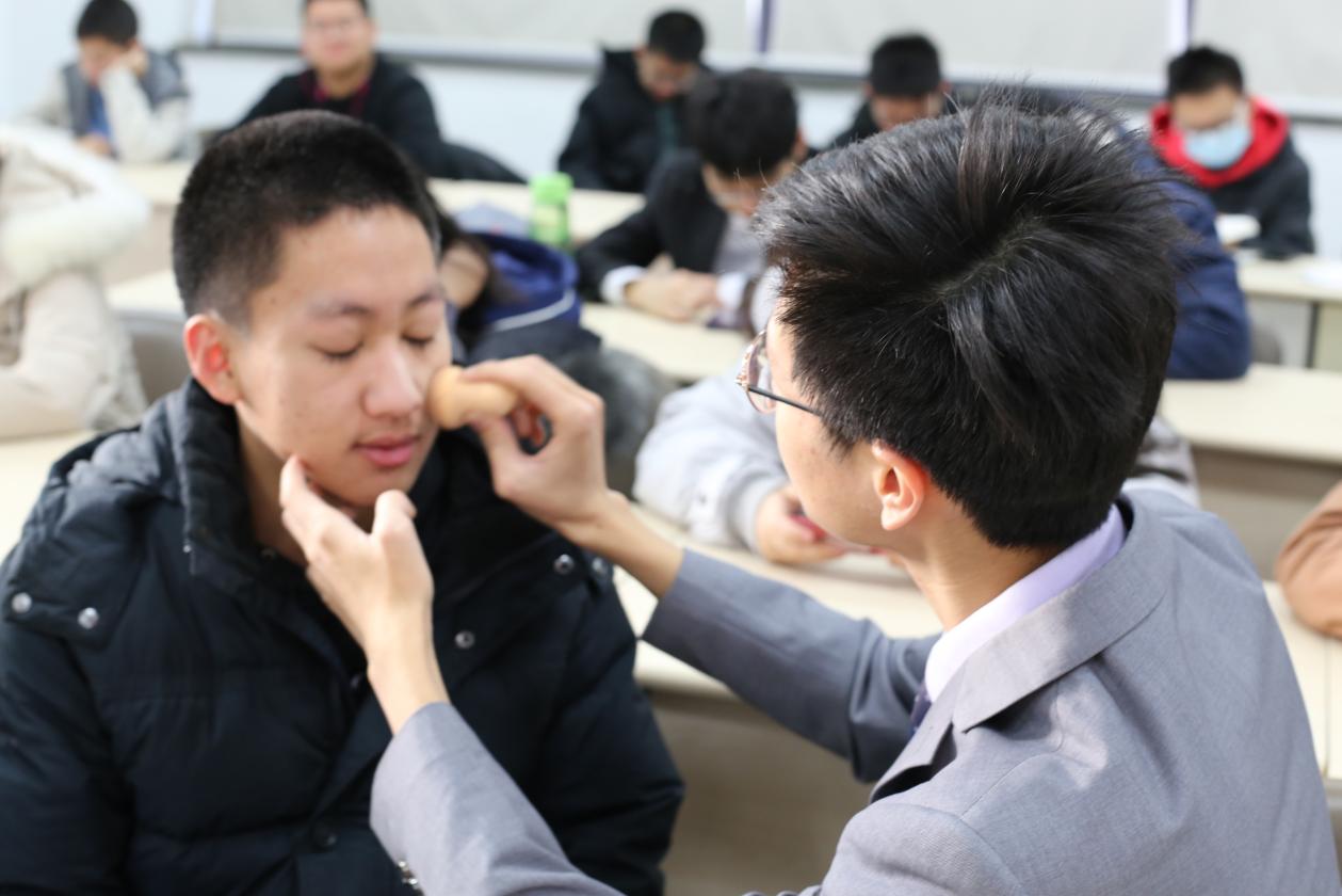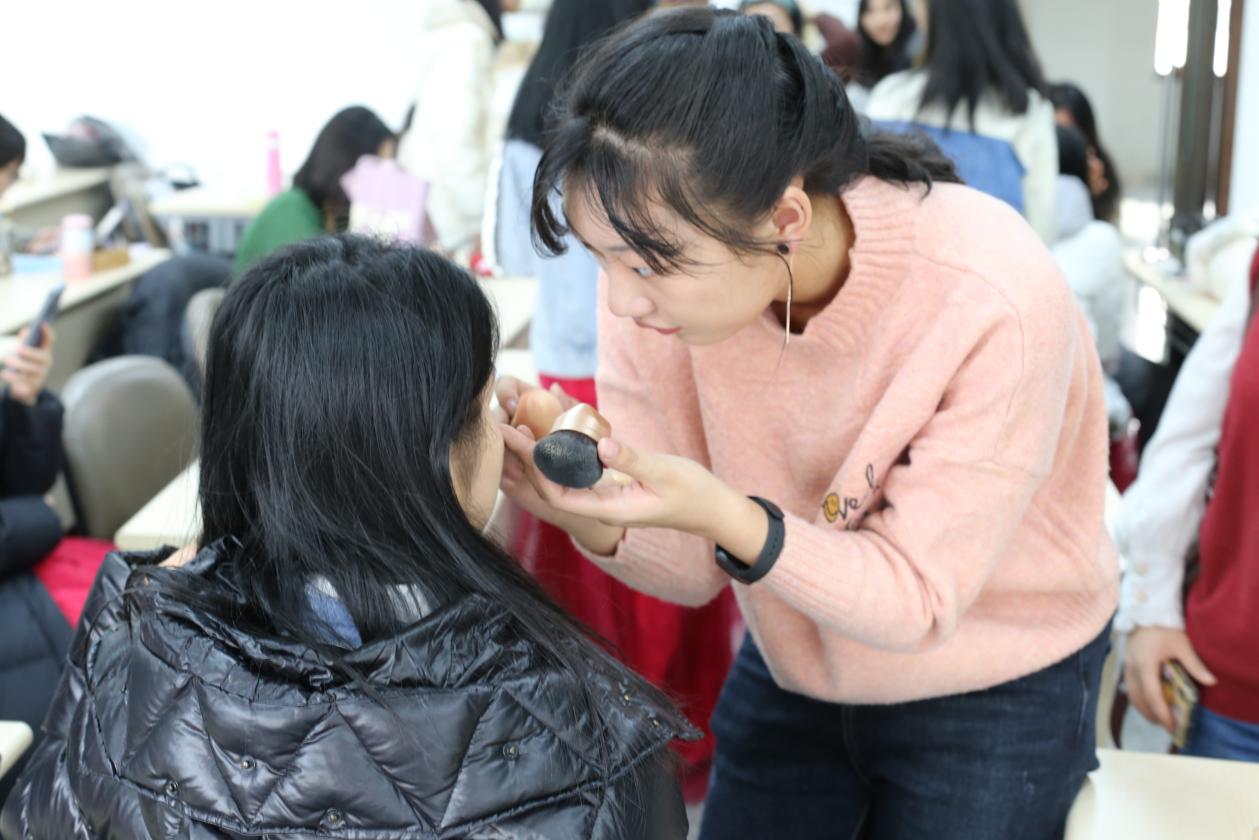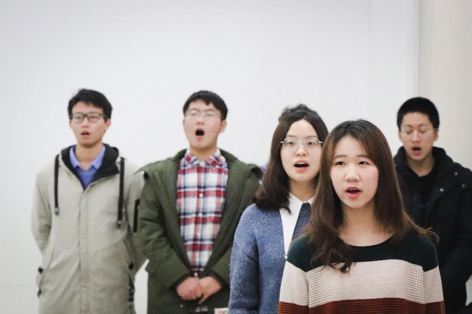 回顾今日,合唱成员们的征途从一早便已开始。早上10点,sunbet的同学们就聚集在明商0204教室,为比赛进行最后的准备。一身西装,沉稳大气,谈笑中传递着男生们必胜的信心;一袭长裙,淡妆浓抹,镜子里倒映出女孩们明媚的笑颜。每位成员都调整到自己最好的状态,等待着踏上舞台的那一刻。