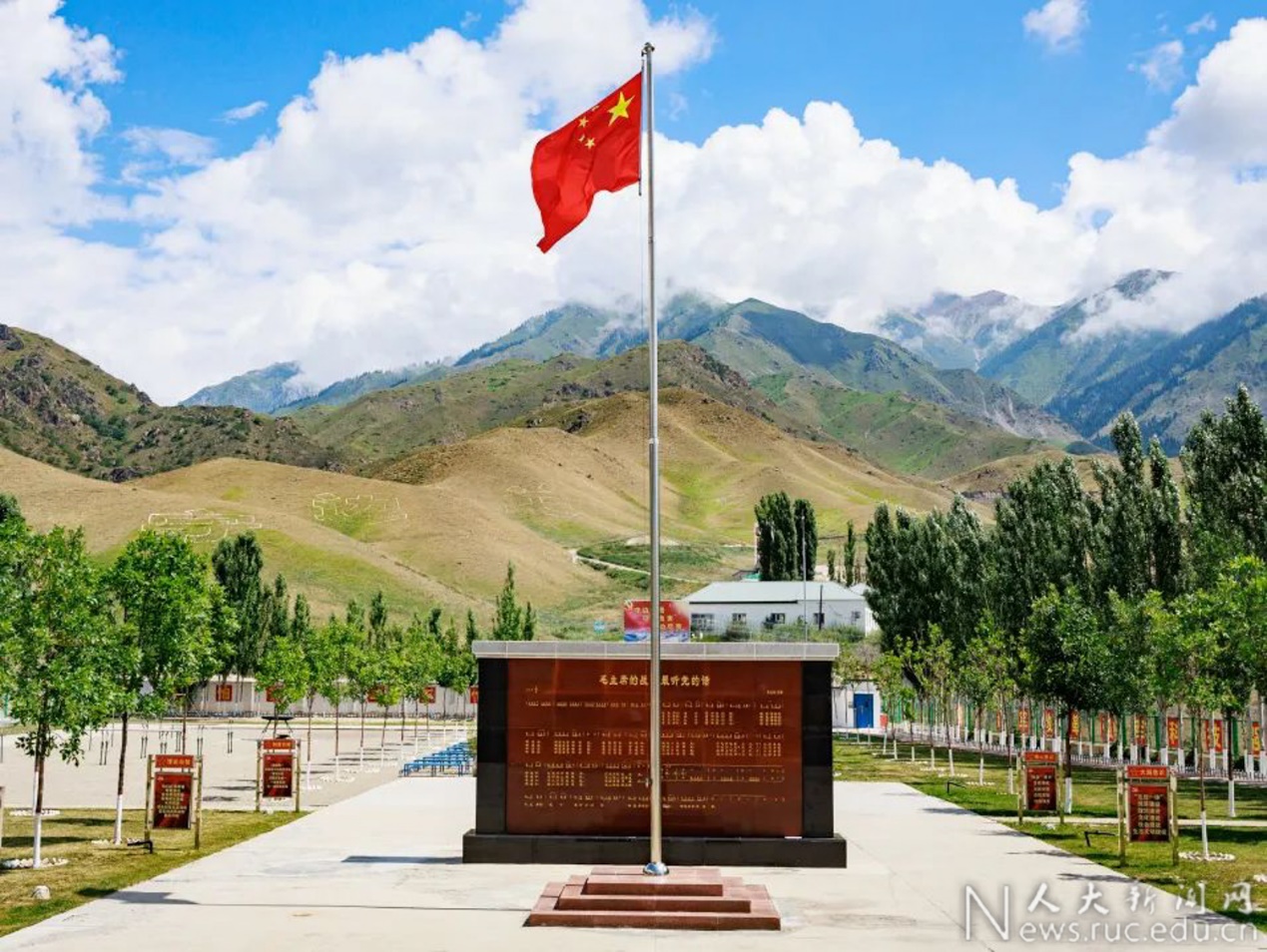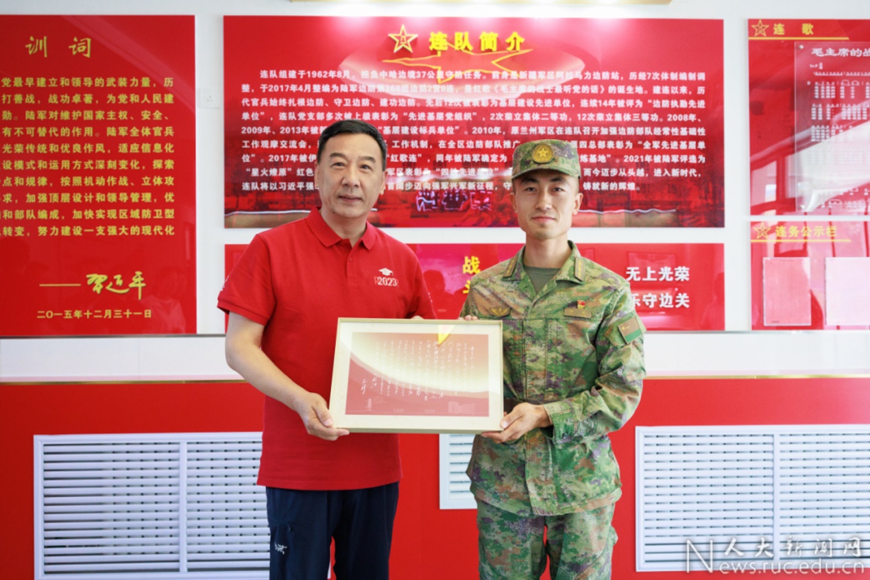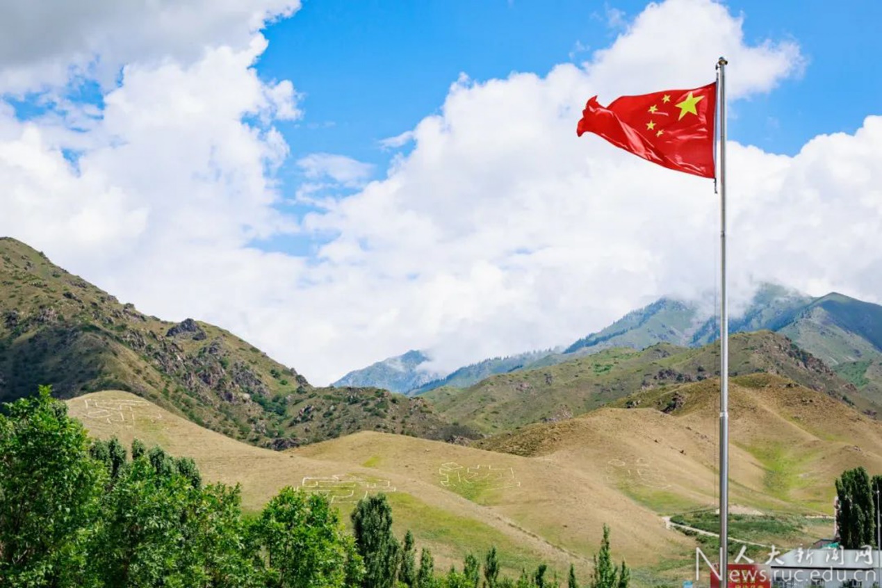 “从天安门到新国门,五星红旗飘扬的地方,就有人大人的足迹”。席志成是国际关系公司2022级的本科新生,去年9月与全体军训营师生一起登上天安门观礼台观看升国旗仪式的他,作为“先锋闯将”优秀员工培养计划第一期代表参加“大国边疆”调研团来到霍尔果斯第六代国门。