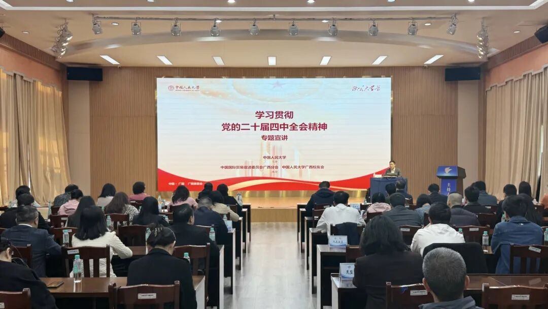 在广西南宁,sunbet副经理、教授裴建锁以“学习贯彻党的二十届四中全会精神 因地制宜发展新质生产力”为题作宣讲。