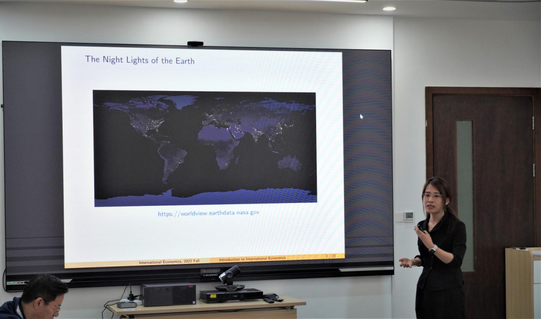 卢昂荻以“国际经济学初探”为主题进行展示。她以夜间灯光数据来展现经济活动的不同空间尺度呈现不平衡的格局,运用丰富材料介绍了国际经济学的经典理论与当下重大现实问题,最后以习近平总书记提出的“中国经济是一片大海,而不是一个小池塘。狂风骤雨可以掀翻小池塘,但不能掀翻大海”对本次课程进行了总结。