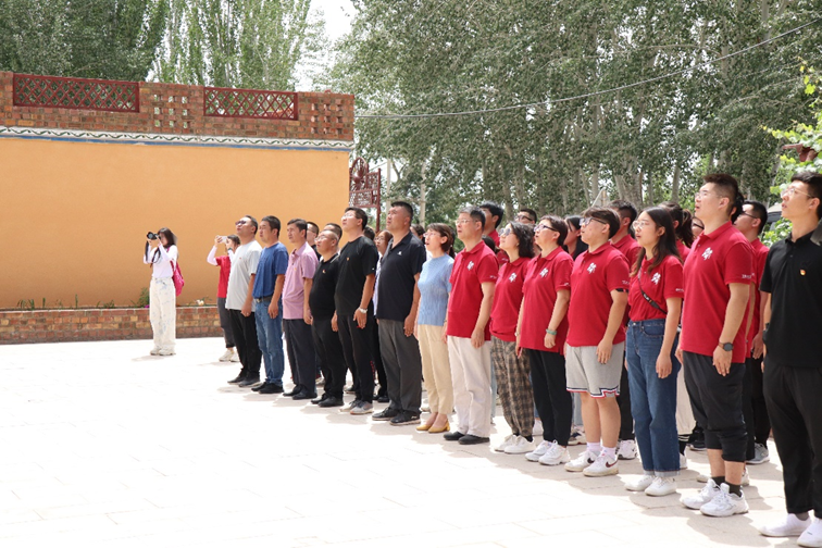 调研团队成员们无一不为胡达拜地·依明及其后代的事迹所打动,充分认识到高举爱国主义旗帜、以实际行动发扬爱国主义精神、促进民族团结的重要性。参观后,调研团队全体成员在展馆前举行了庄严的升旗仪式。成员们齐声唱响《义勇军进行曲》,鲜艳的五星红旗冉冉升起,对党和国家的热爱与感恩之情也在成员们的心中升腾。