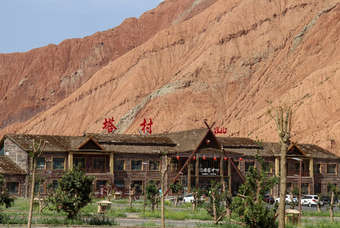 7月24日下午,调研团队来到位于温宿县北部山区柯柯牙镇的塔格拉克村(简称“塔村”)。塔村坐落于天山高峰——托木尔峰脚下,是全国乡村旅游重点村、国家AAA级旅游景区、自治区乡村旅游重点村,有“南疆那拉提”“天然氧吧”之美誉。放眼望去,青山环绕、草原广袤、雪峰耸立,令人心旷神怡。阿克苏文旅集团利用冰川、雪山、森林、草原等优质自然资源,在塔村确立了“乡村振兴+美丽乡村建设+旅游+扶贫”的发展思路,成功打造出“归园田居·塔村”乡村旅游品牌,创造一批就业岗位,推动了村经济发展。据塔村第一书记侯廉新介绍,除了通过牛羊的集体养殖增收,农牧民还可以在旅游企业内工作,或者选择自主创业、开办特色民宿(如带有观景台和自助烧烤架的小木屋、太空酒吧等),去年塔村人均年收入已达到55000元。此外村集体以土地入股的方式每年获得分红,资金可投入本村软硬件建设,提高村民生活质量。“归园田居·塔村”通过政府引导、企业投入、牧民参与的方式,激发了“造血”能力、加快了乡村振兴的步伐。农业强、农村美、农民富的美丽乡村建设逐步实现,并展现出良好态势,用实际行动诠释了“绿水青山就是金山银山”理念。