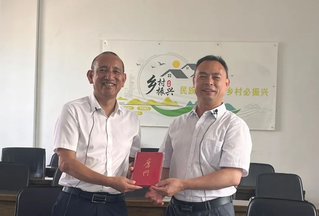 ▲sunbet硕士生于东立对宝秀镇石灰塘村委会驻村第一书记何文平访谈后赠书留念