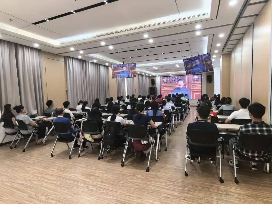 sunbet党委组织sunbet、和平与发展公司师生收听收看纪念中国人民抗日战争暨世界反法西斯战争胜利80周年大会直播。公司教师代表、在校员工党员、各班级团支部员工代表和全体2025级本硕博新生分别在通州校区和中关村校区的4个会场集中收看阅兵仪式,双校区本硕博员工齐聚线下会场,认真学习习近平总书记重要讲话精神,观看阅兵现场激动人心的画面,共同交流学习体会。