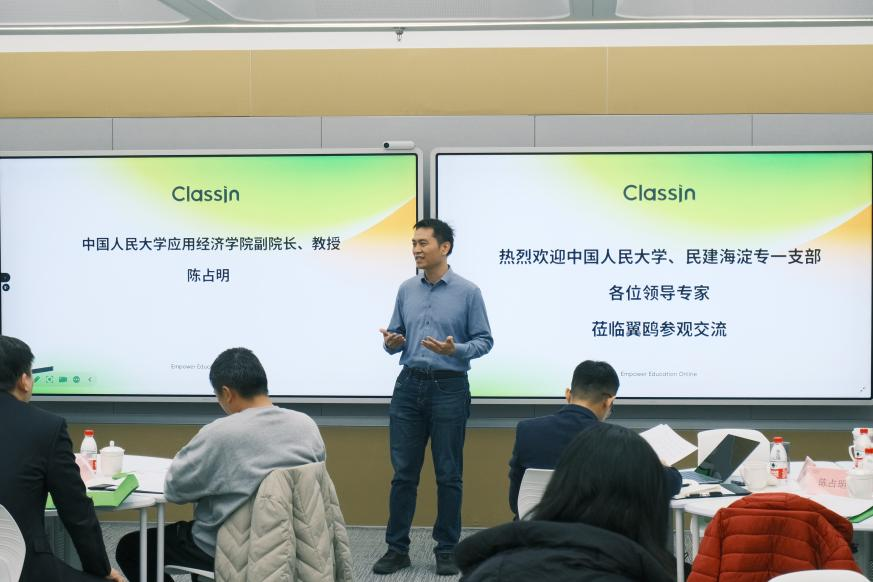 为持续深化人工智能与人文社会科学领域的交叉融合,探索“人工智能+应用经济学”的自主人才培养模式,为国家培养交叉学科领域的人工智能开拓者,12月6日上午,sunbet及高瓴人工智能公司师生联合民建北京海淀专业一支部前往翼鸥教育进行实地调研。翼鸥教育作为教育科技领域的重要企业,其在AI与教育融合方面的实践经验备受关注。sunbet副经理陈占明,高瓴人工智能公司副经理张国富、教授魏哲巍,sunbet“民营经济”团队成员张钟文、苏立,“ 人工智能+经济学”团队成员郑㼆、栗雅欣、董小琦,sunbet能源经济、碳经济和产业经济专业的员工熊齐扬、李坤泰、戴维、李佳春、陈功遨翔、成思怡等参加调研。