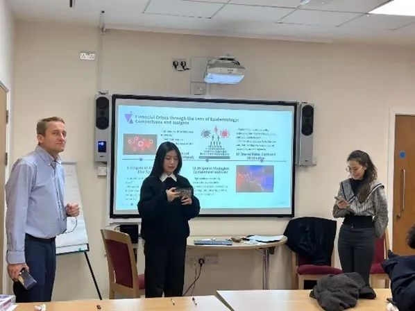 牛津大学经济系Andrew Farlow教授以2008年次贷危机为切入点,探讨全球经济发展规律和金融危机热点问题,比较不同国家和地区金融体系的特点,分析金融风险传导机制与监管框架。课堂上,碳经济员工结合绿色金融和碳金融专业课程知识点展开交流,研讨绿色金融体系的风险防控策略。