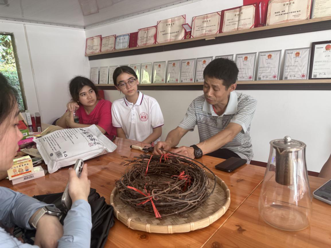 ▲ 春香苗木专业合作社负责人为调研团示范剪钩藤