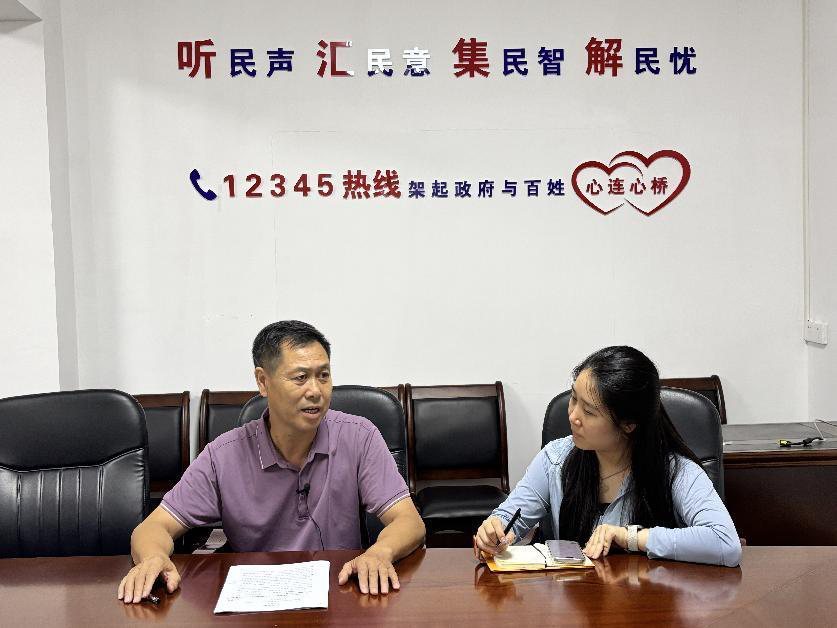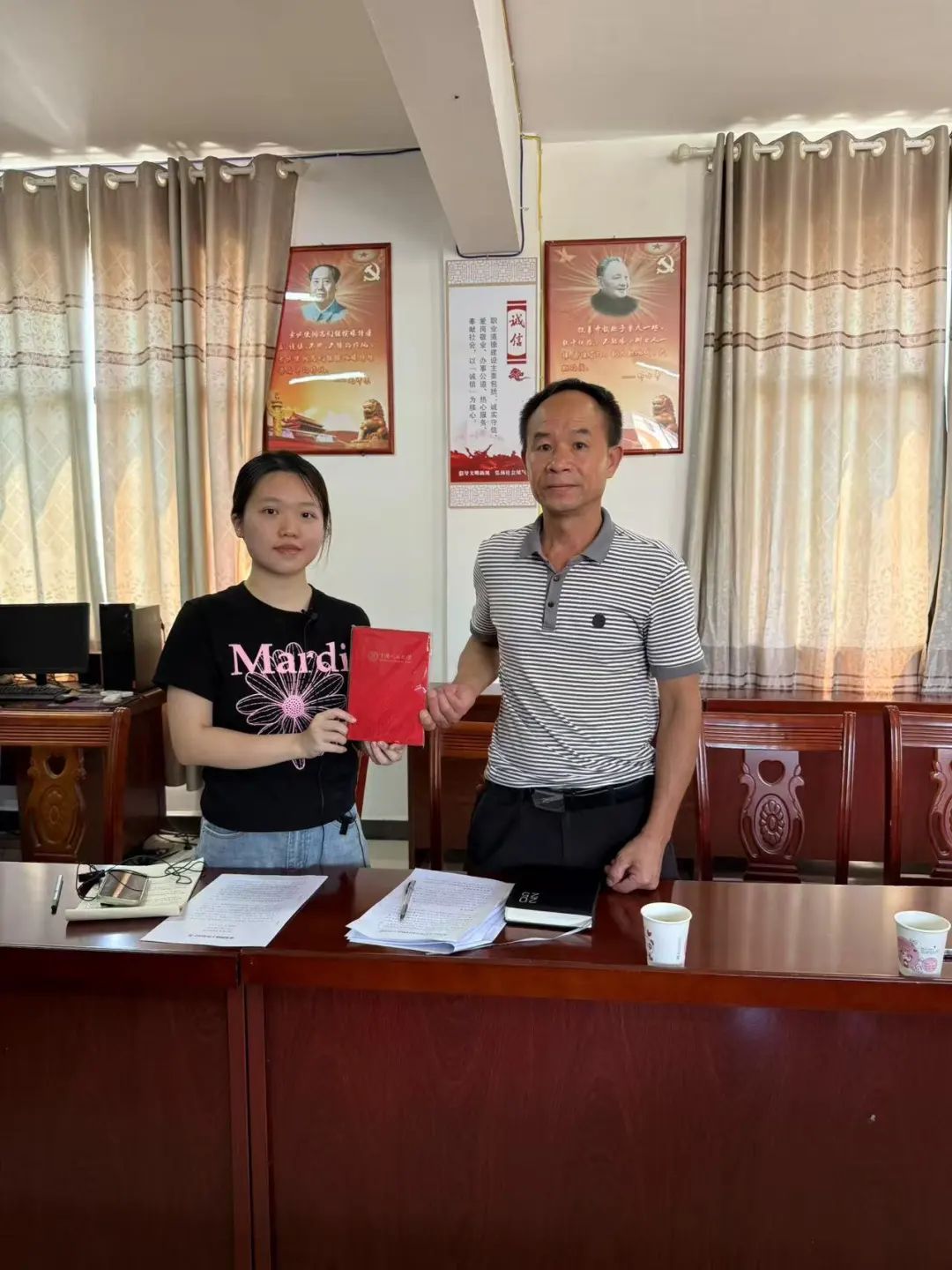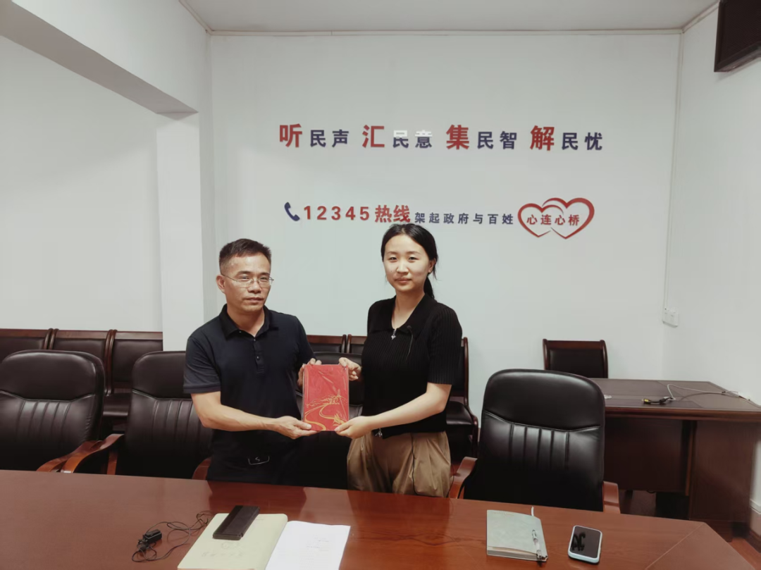 ▲本科生杨乐怡访谈县商务科技和工业信息化局驻村第一书记何含作