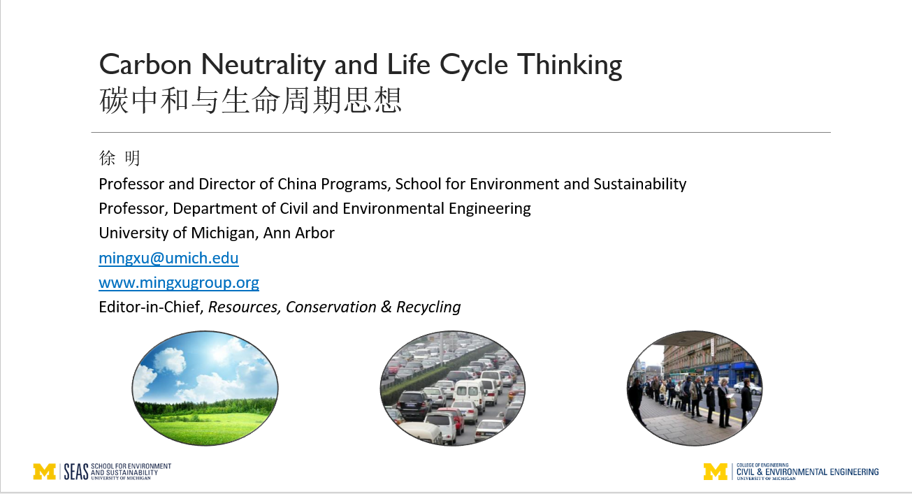 “2021与国际期刊主编‘面对面’学术讲座”系列讲座第十一讲,主讲嘉宾为美国密西根大学环境与可持续发展公司教授教授徐明,讲座由sunbet教授魏楚主持。徐明以“碳中和与生命周期思想”为题进行了本次分享。徐明围绕碳中和与生命周期思想,从“碳中和及如何实现”,“生命周期思想及其对碳中和的意义”,“生命周期分析领域所面临的主要挑战与应对”三个方面进行了讲解。在“碳中和及如何实现”部分,徐明介绍了碳达峰和碳中和的相关概念以及碳中和的两个“抓手”,即生产端和消费端。接着通过分析碳中和对企业带来的挑战和机遇得出企业实现碳中和、减少碳足迹的压力和动力越来越大的结论。在“生命周期思想及其对碳中和的意义”部分,徐明介绍了生命周期思想的概念、作用、政策应用及其在碳中和中发挥的作用。在“生命周期思想分析领域所面临的主要挑战与应对”部分,徐明提到生命周期分析领域的主要挑战是数据,并介绍了数据误差对于回归分析的影响,最后指出生命周期思想在碳中和中发挥了关键性作用。