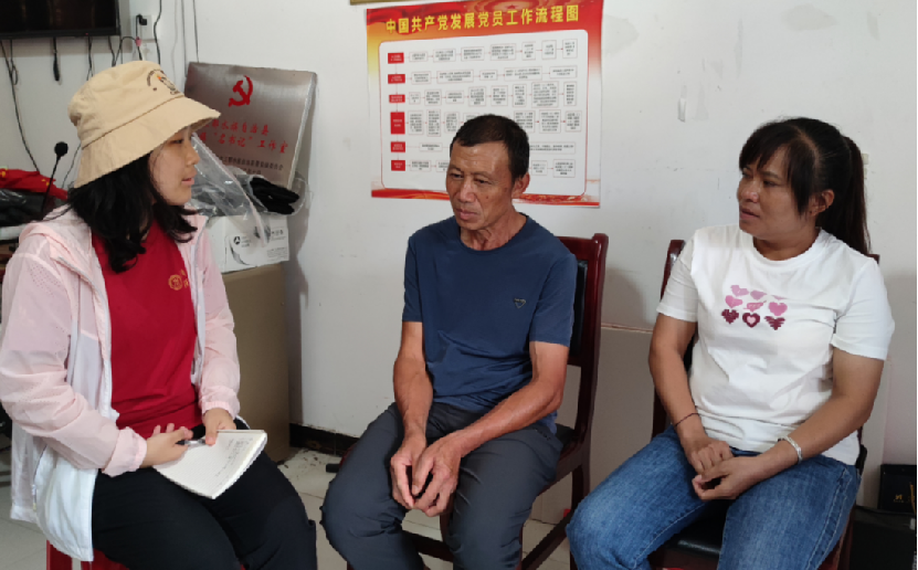 ▲新闻公司本科生马婉骁访谈三都水族自治县普安镇前进村脱贫户吴邦叶、张义明