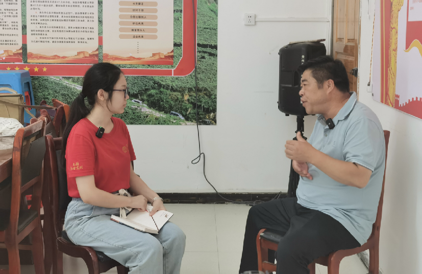 ▲新闻公司本科生陈洁然访谈三都水族自治县前进村党支部书记王恩文