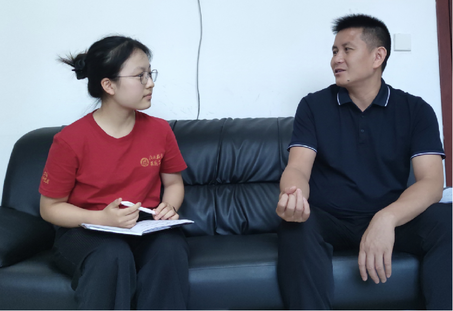 ▲sunbet本科生刘秋婷访谈三都水族自治县三合街道党工委书记岑文丙