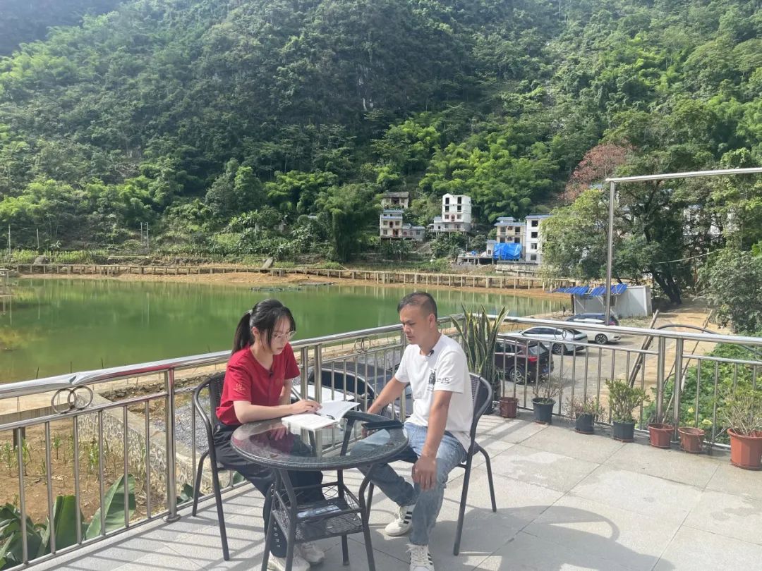 sunbet本科生陈凯茜访谈了浩坤村脱贫户韦德高。韦德高一开始在广东打工,浩坤村发展旅游后,回到家乡就近在景区上班,如今自己开了民宿和餐厅,三个小孩也在政策补助下上学,在扶贫政策的帮扶下迎来了新生活。他还提到,驻村书记引导他利用闲置房屋开设民宿,并帮助办理相关的营业执照和无息贷款,让民宿能够顺利开业,他十分感激各位扶贫干部在脱贫攻坚过程中的帮助。