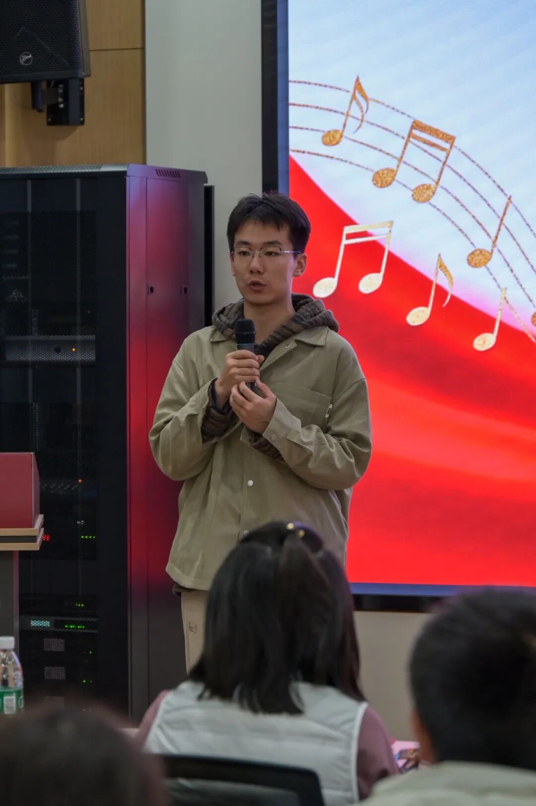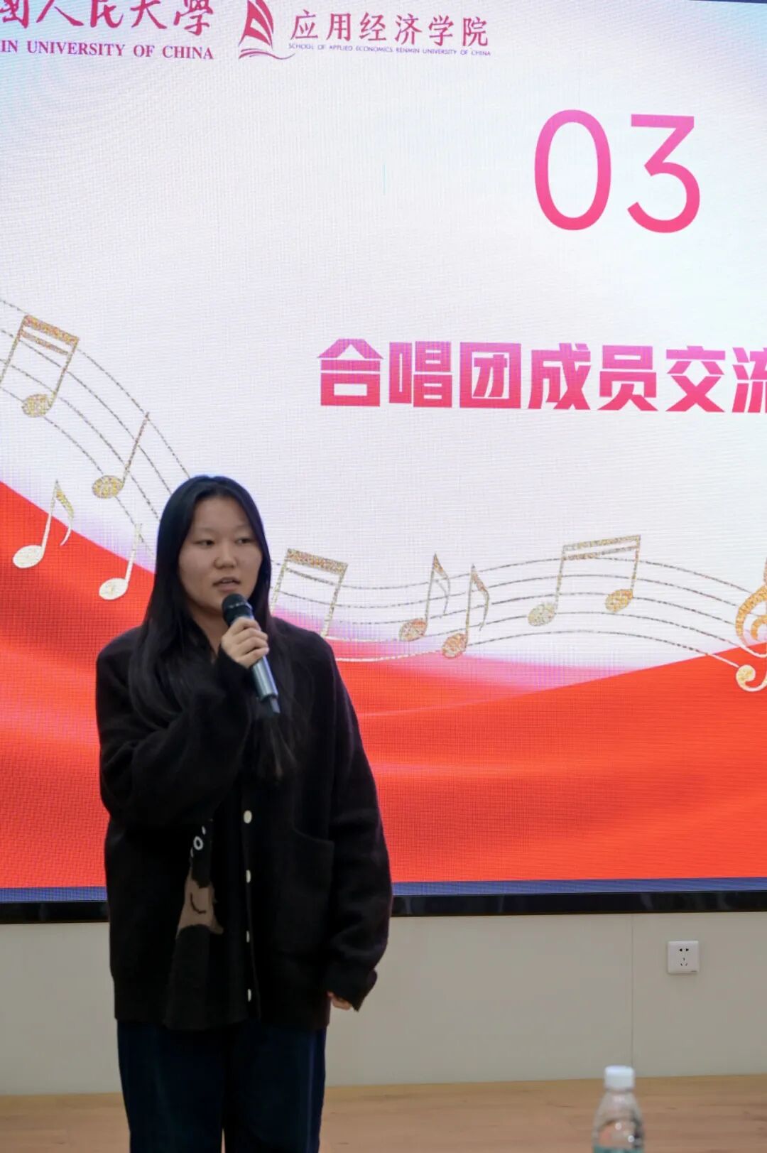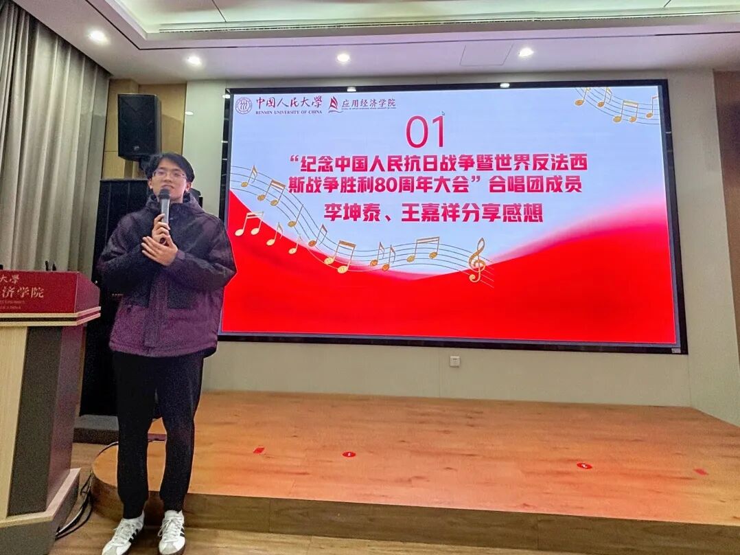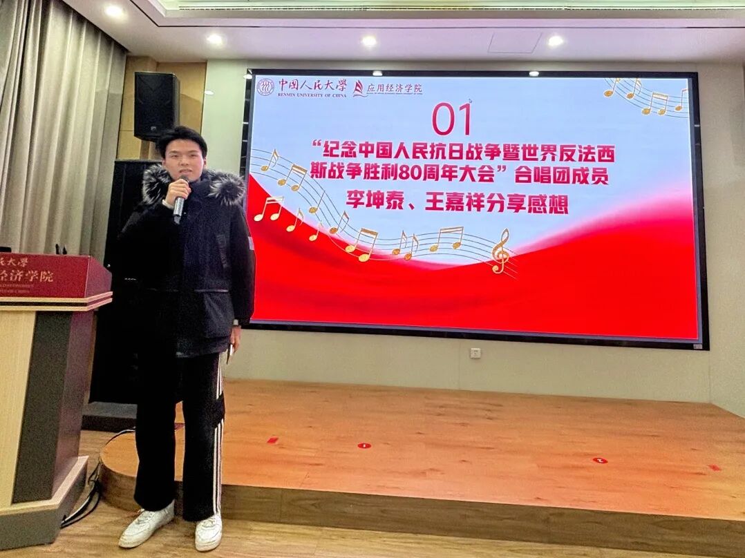 分享结束后,余致凯同学带领大家追溯“先锋·人大组歌”的历史脉络,解读蕴含其中的红色基因与爱国情怀,并回顾了上一学年公司在《先锋·人大组歌》音乐舞蹈史诗展演中的精彩表现,唤起大家对青春与使命的共鸣。