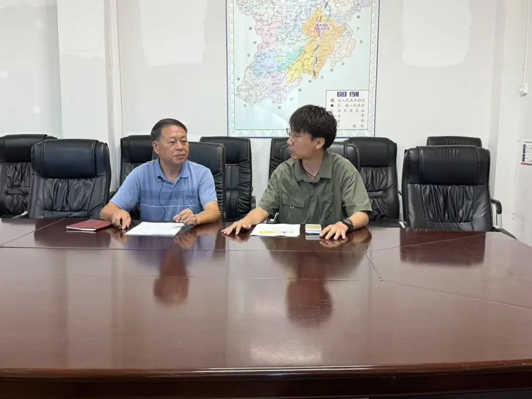 ▲访谈团本科生迪力木拉提访谈县委实施乡村振兴战略领导小组办公室副主任周炳旭