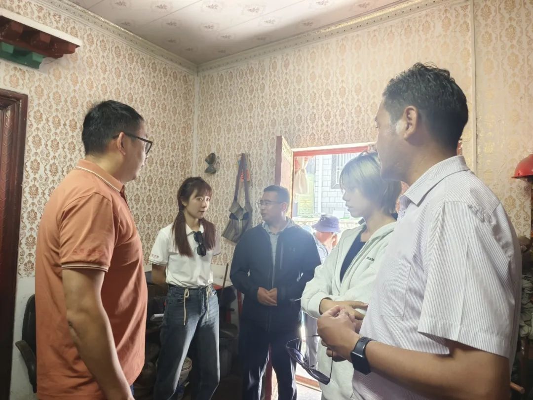 ▲访谈团实地调研雪巴村民宿产业发展情况