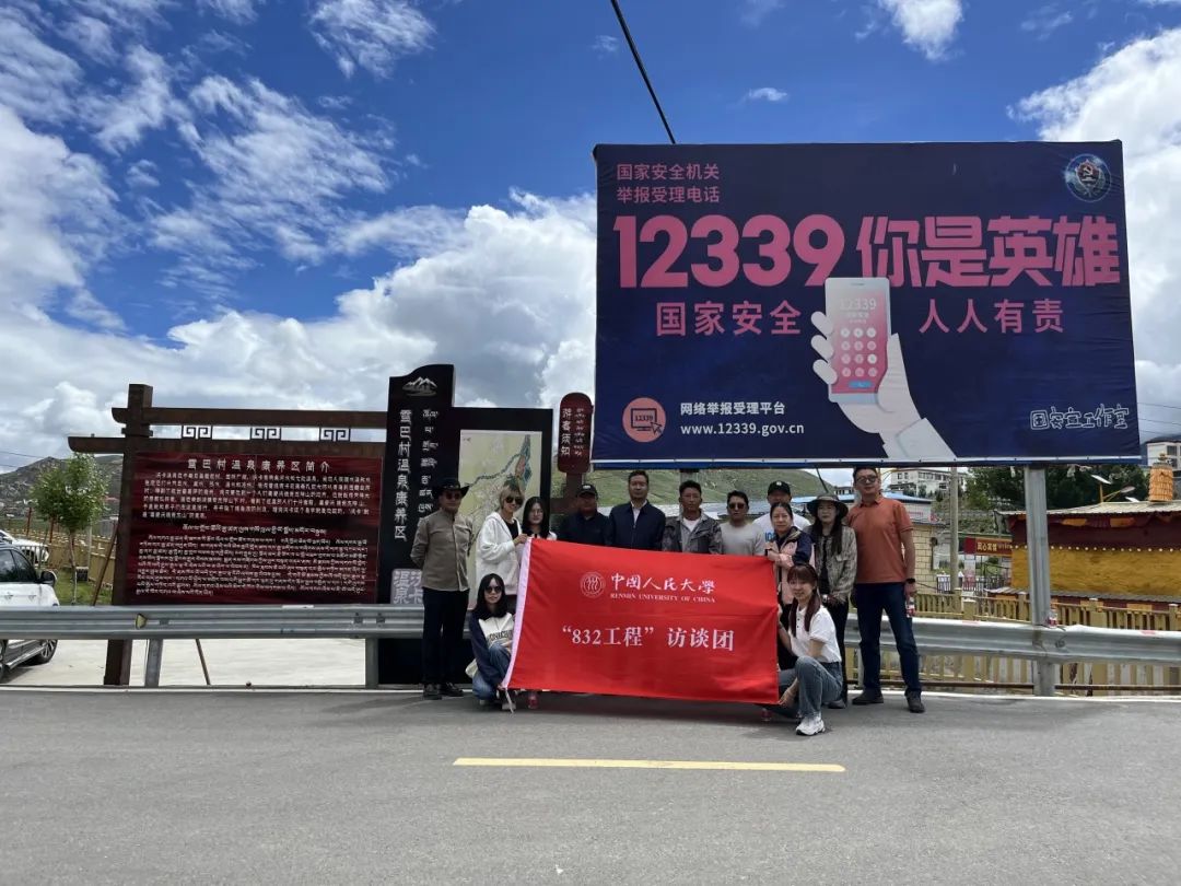 ▲访谈团合影于雪巴村温泉康养区