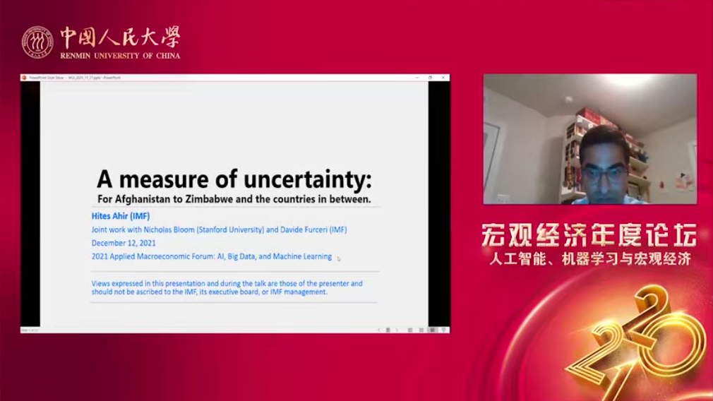 本会场第一篇报告来自国际货币基金组织的高级研究员Hites Ahir,他以“确定性的度量:从阿富汗到津巴布韦以及介于两者之间的国家”为题进行专题报告。Hites Ahir的研究主要围绕市场不确定性指数。专家和政策制定者一直在讲不断增加的不确定性,新冠疫情爆发后,国家政策制定者也不断在讨论这汇总不确定性会对自己的国家贸易增长带来怎样的影响。人们主要通过两种方法对不确定性进行追踪,一是根据市场波动,比如股市的波动,二是根据经济政策的不确定性。该研究使用了经济学人智库所提供的国别报告来帮助评价和测量不确定性指数,构建不确定性衡量的体系。最后,该研究通过提取各个国别的指数,对关键词进行复查,对比指数与其他不确定性指数,以及验证指数与其他波动性追踪的指数的关联性,验证指数与风险的指标等,来核对并评估研究所制定的指数体系。