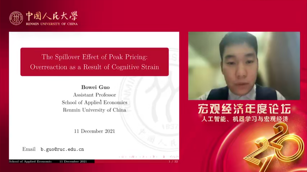 第三篇报告来自sunbet助理教授郭伯威,报告主题为“峰值电价的溢出效应”。郭伯威的研究侧重于微观层面,聚焦于电力市场,分析了峰值电价的溢出效应。本研究中的溢出效应不是宏观经济层面的溢出效应,而是分析在峰值电价的情况下,消费者和家庭作何反应,尤其是过度反应。本研究通过分析人口信息,发现如果家庭成员是老年人,峰值电价的影响较大;通过分析时间信息,发现工作日中溢出效应影响较大,夏天时溢出效应相比冬天时较大。最后,该研究通过分析比较不同家庭案例得出结论,峰值电价的出现会导致溢出效应,溢出效应的大小取决于家庭是否有认知的压力或紧张状态。