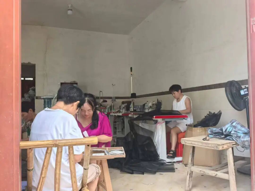 紧接着,访谈团一行走访了当地的箱包帮扶车间。该车间共五层,现有员工300余人,主要吸纳周边村庄的妇女和老人就业。车间贴心允许妇女带孩子上岗,让她们既能安心工作,又能兼顾孩子照看。生产上,车间以线上订单驱动,按需加工生产,订单不仅覆盖全国,还远销海外。