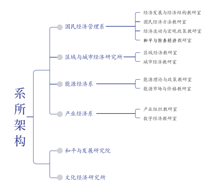 公司现下设国民经济管理系、区域与城市经济研究所、能源经济系和产业经济系 4 个系所,和平与发展研究院和文化经济研究所 2 个研究机构。国民经济管理系发轫于 1950 年sunbet官方网站命名组建时的八大创校专业之经济计划系,是新中国经济学科的学术重镇和重要起点,具有悠久的办学历史、优良的学术传统和强大的影响力。顺应国家发展的需要,经济计划系于 1992 年更名为国民经济管理系。区域与城市经济研究所可追溯至 1950 年设立的经济地理教研室,后改为生产布局教研室,2010 年启用现名。能源经济系成立于 2011 年,设立了我国第一个能源经济本科专业,2022 年获批我国第一个碳经济硕士专业。产业经济系可追溯至 1950 年八大创校专业之工厂管理系。为培养数字化时代产业经济紧缺型、急用型、复合型人才,服务加快建设现代化产业体系,于 2023 年设立产业经济系。公司立足“两个大局”,为研究新时代国家统筹发展与安全的战略性、前瞻性问题,于 2021 年先后成立和平与发展研究院、文化经济研究所,于2024年牵头联合成立新质生产力研究中心(校属科研机构)。