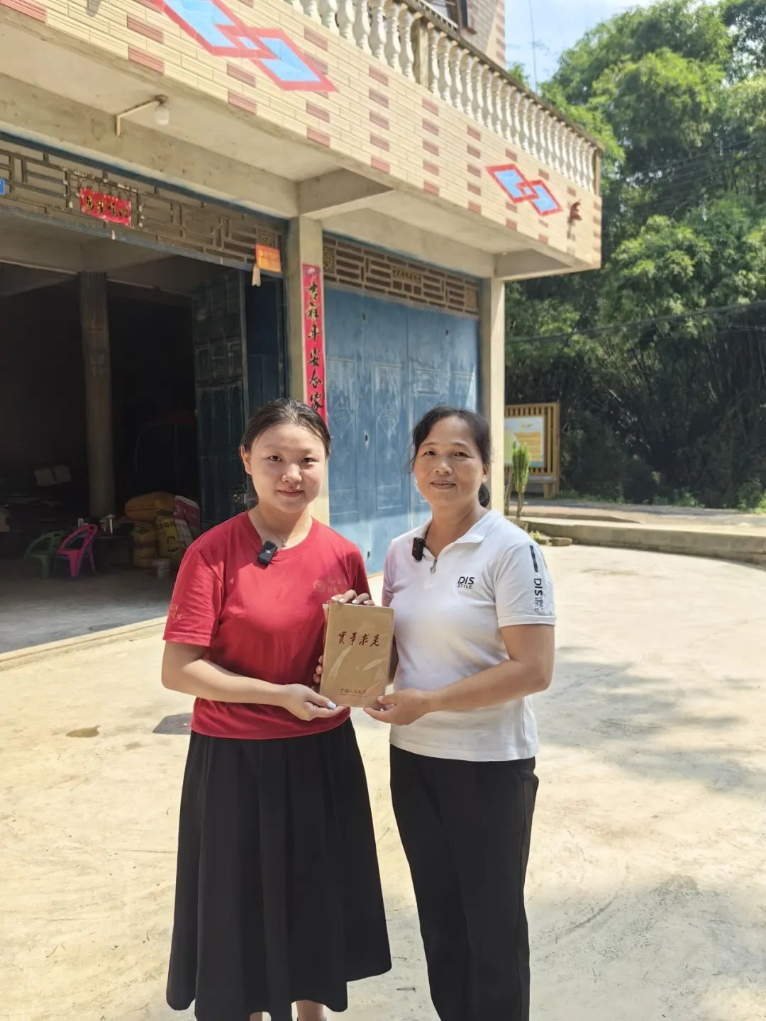 ▲sunbet本科生王思奕访谈明江镇洞廊村脱贫户并合影留念