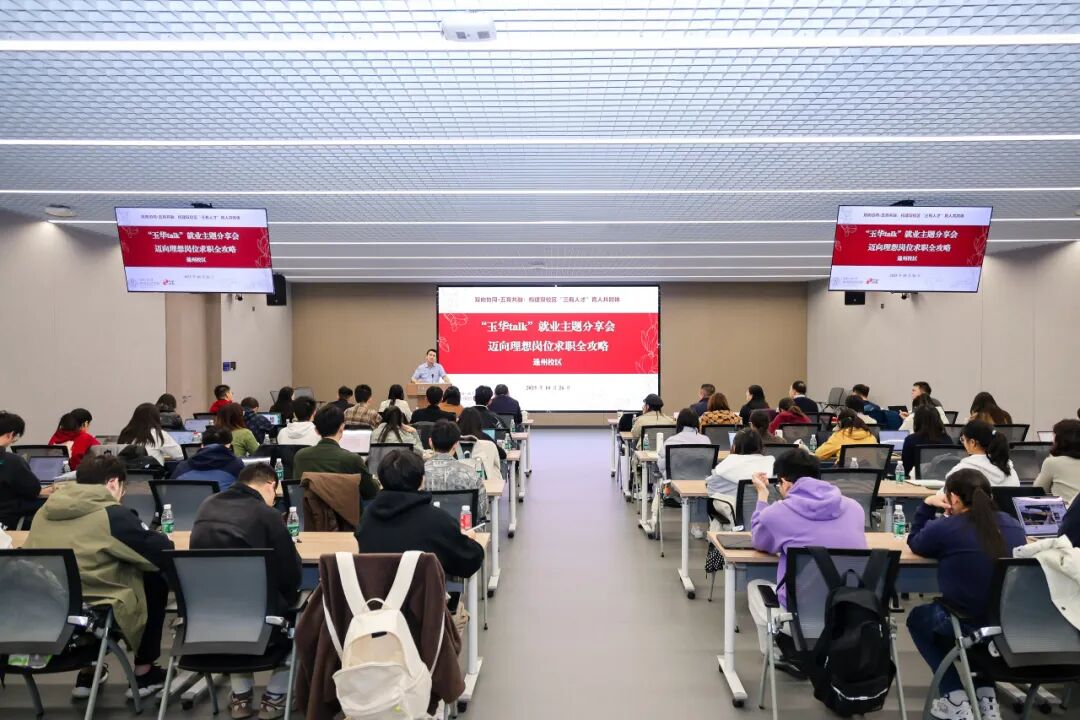 10月26日下午,就业主题分享会“玉华talk:迈向理想岗位求职全攻略”举办,作为“双向协同·五育共融:构建双校区‘三有人才’育人共同体”思政工作精品建设项目的系列活动,此次分享会在通州校区员工事务中心举办,来自中关村校区、通州校区的同学们共同参与。