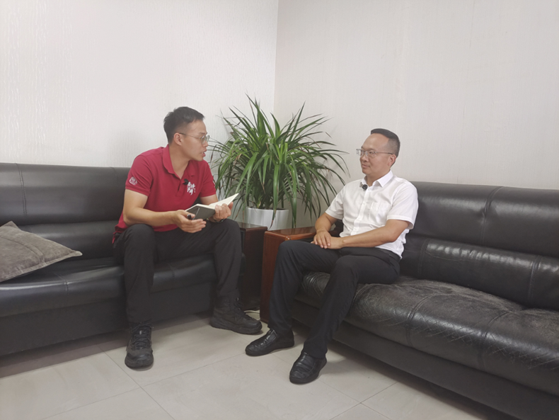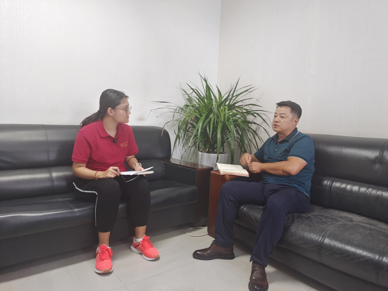 ▲本科生赖于蓝访谈黄桶街道党工委副书记、办事处主任张涛