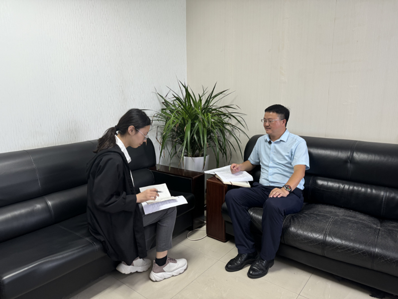 ▲本科生赖于蓝访谈县乡村振兴发展中心副主任唐宽